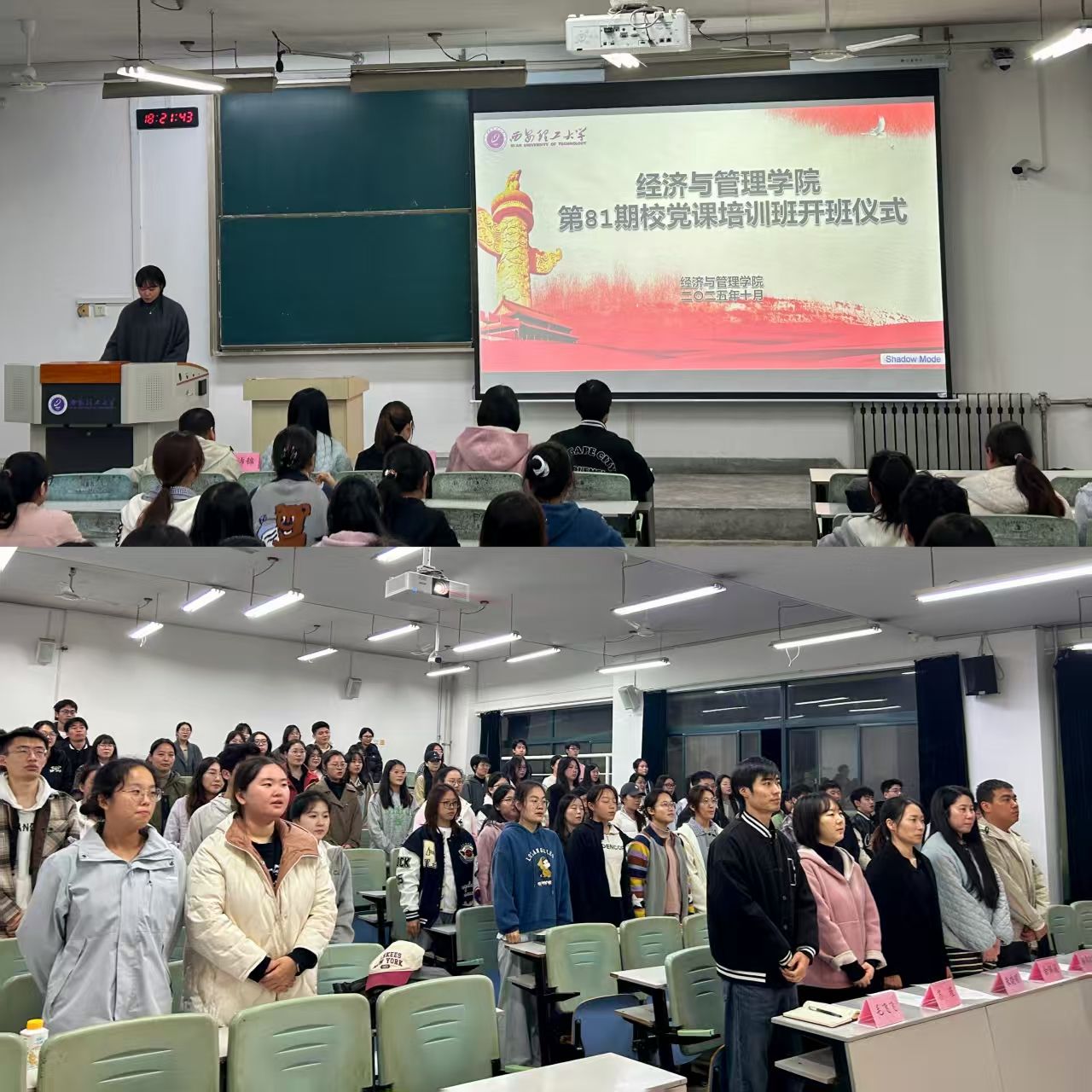 为深入学习贯彻习近平新时代中国特色社会主义思想和党的二十届四中全会精神,深入贯彻落实新时代党的建设总要求和新时代党的组织路线,做好新时代党员发展和教育工作,10月29日晚,经济与管理学院分党校在教8-216教室举办第81期入党积极分子培训班开班仪式。学院党委副书记兼副院长朱晓明、学工办辅导员及培训班全体学员参加了本次活动,开班仪式由分党校负责人黄博琳主持。