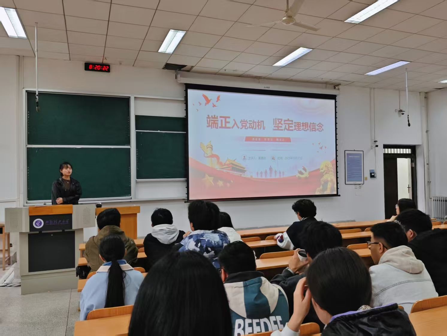 开班仪式结束后,学生党建负责人黄博琳为同学们带来了第一讲《端正入党动机,坚定理想信念》。她从入党动机的审视与矫正、接受党组织的培养与考察、争做合格共产党员三个方面引导同学们深刻认识到端正入党动机的重要性,此外她还强调要强化理论学习、投身实践锻炼、积极自我改造、坚持持续修养,以党员的标准严格要求自己,以昂扬的斗志、饱满的热情和无私的奉献精神,全身心地投入到伟大的社会主义建设事业当中,要用实际行动,回答好“入党为什么”这一永恒的命题,诠释好共产党员的初心与使命。