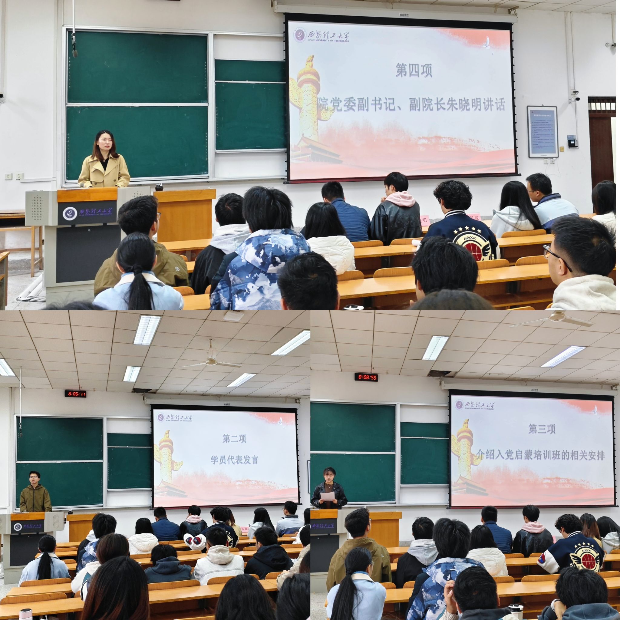 为引导学院广大青年学生深入了解党的历史、宗旨和使命,明确入党动机,坚定理想信念,积极向党组织靠拢,10月31日上午,经济与管理学院在教10-401教室举行了2025年入党启蒙教育开班仪式暨第一讲《端正入党动机,坚定理想信念》活动。学院党委副书记兼副院长朱晓明,学工办主任余佩媛,辅导员任程宇、毛飞飞、王峥及培训班全体学员参加了本次活动,开班仪式由黄博琳主持。