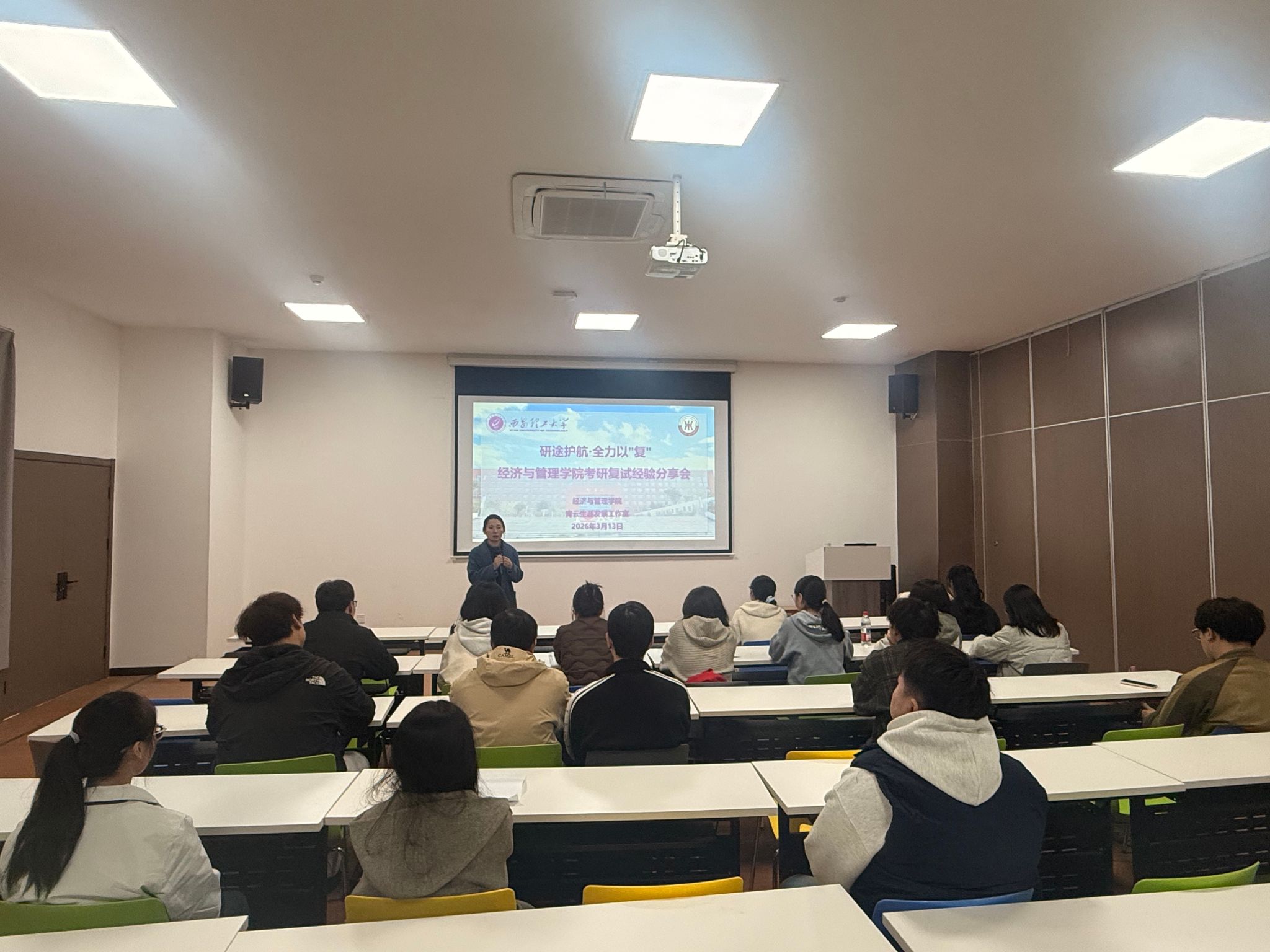 为切实助力2026届考研学子精准备战复试、提升应试竞争力,缓解备考焦虑,3月13日下午,西安理工大学经济与管理学院在曲江一站式服务社区顺利开展“研途护航·全力以‘复’”考研复试指导活动。学院党委副书记、副院长朱晓明、青云生涯发展工作室主持人苏瑾出席本次活动,活动由学院就业专干梁姝主持。