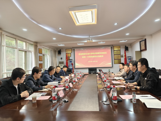 10 月 16 日,西安石油大学经济管理学院院长吴勋一行来我院开展走访调研。我院院长李建勋、副院长赵璟,各学科及科研秘书参加调研会议。