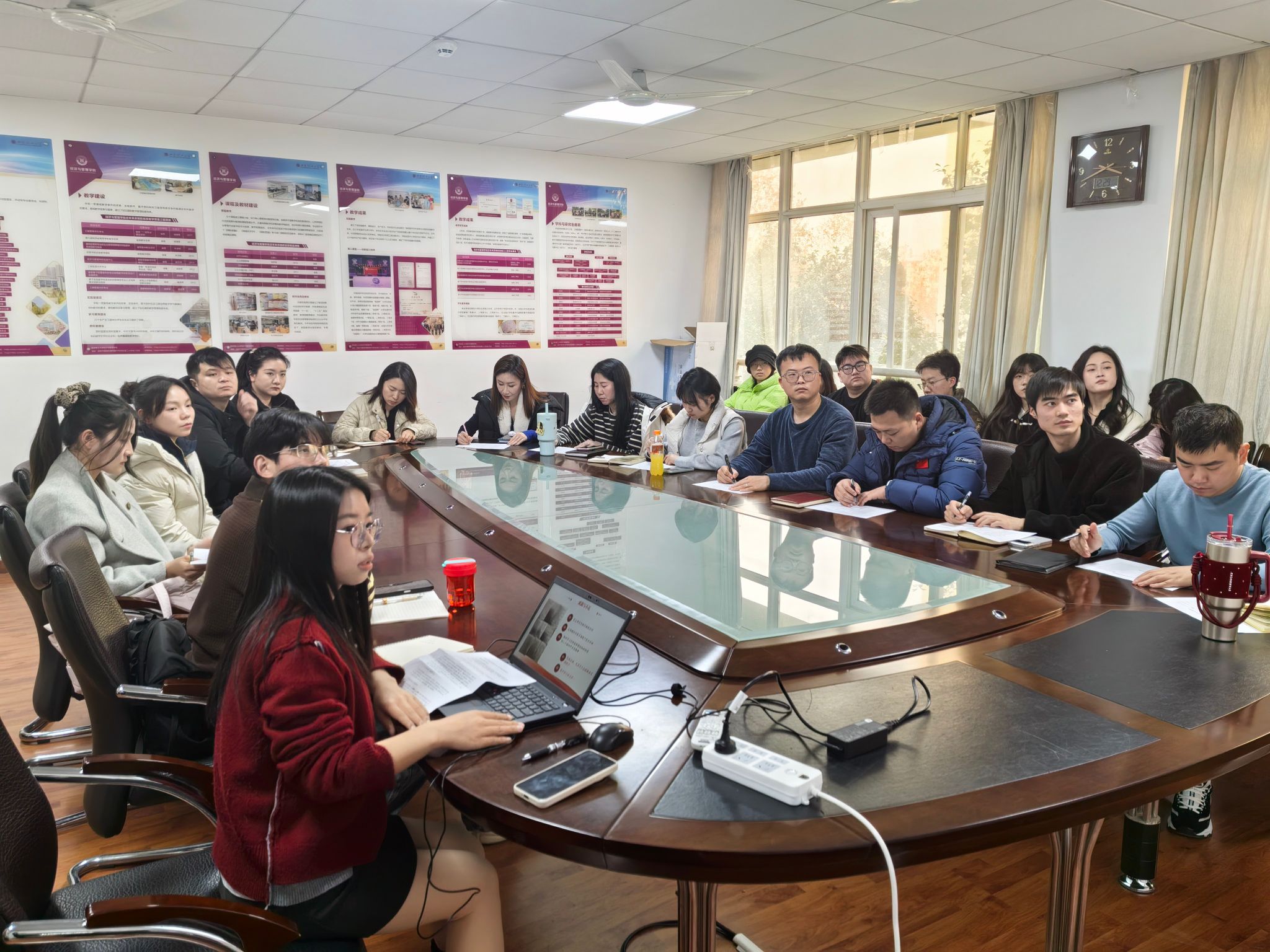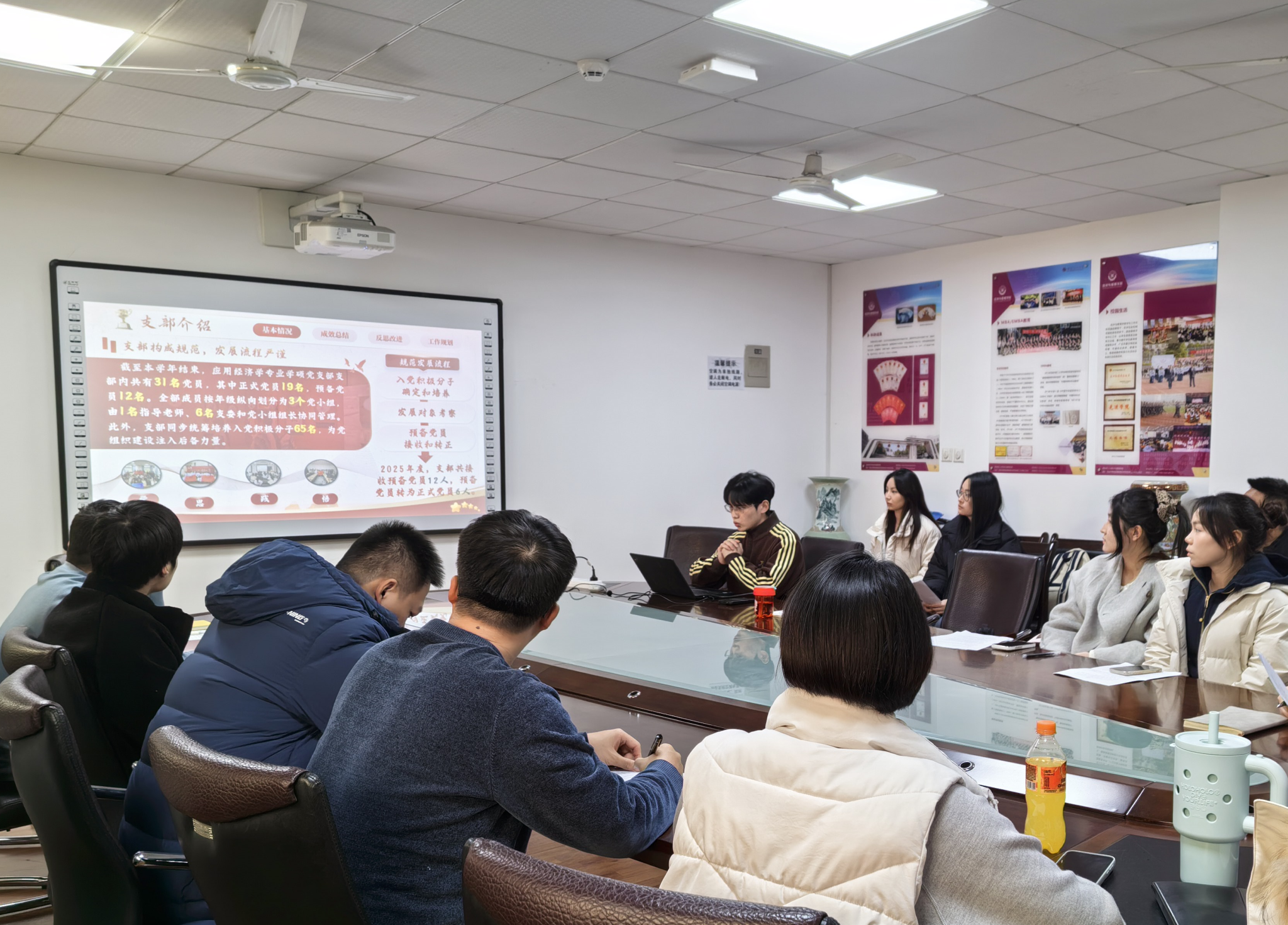 为全面总结2025年度学生党支部工作成效,夯实基层党建工作基础,提升学生党支部凝聚力与战斗力,12月29日下午,经济与管理学院开展学生党支部书记述职大会。学院党委副书记朱晓明、学工办全体辅导员出席会议,各学生党支部书记、支部委员参加会议。