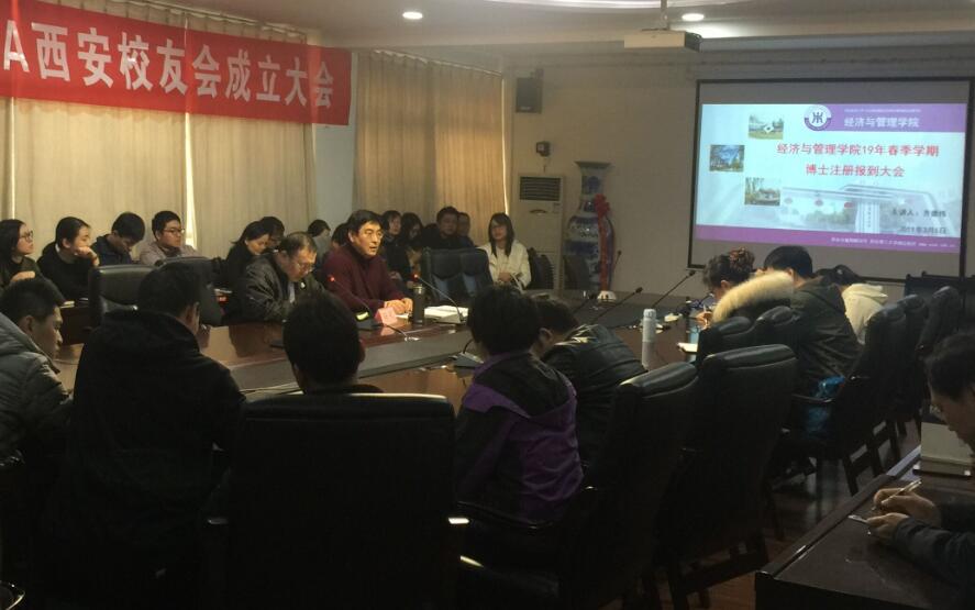 经济与管理学院博士研究生开学注册报到大会于3月5日下午3点在曲江校区教11楼326室第一会议室成功召开,主管学术型研究生杨屹副院长、学术型研究生培养管理办公室齐德伟老师和学术型研究生辅导员余佩媛老师出席了本次会议。大会由齐德伟老师主持。