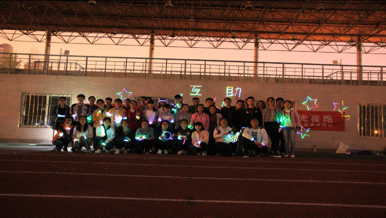 2017年4月4日晚,经济与管理学院互助社在西安理工大学曲江校区一期操场举办了“人人都是笨小孩——荧光夜跑,仰望星空”活动。西安理工大学青年志愿者协会、青青草协会、绿窗协会、唐仲英爱心社等公益性社团的同学也参与了本次活动。