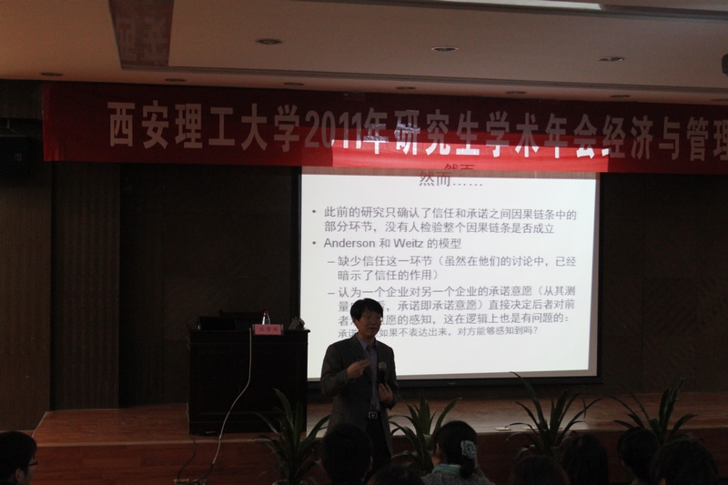 开幕式第二阶段,我院邀请了西安交通大学管理学院庄贵军教授做关于“营销渠道中企业间信任与承诺的循环模型:基于双边数据的实证检验”的学术报告,他的讲解深入浅出精彩纷呈,使同学们受益匪浅。