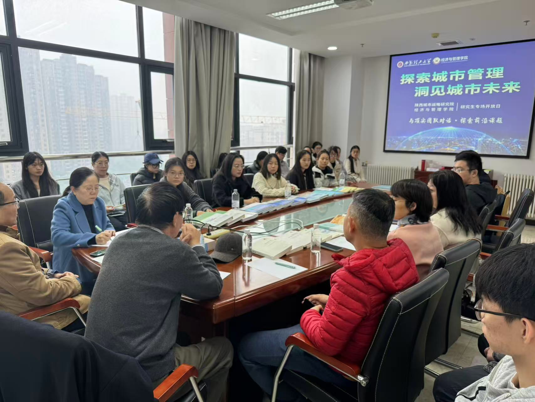 为深化“三全育人”综合改革,落实“砺学弘商”育人理念,拓宽研究生学术视野,2025年10月24日上午,陕西城市战略研究院在我校曲江图书馆七楼会议室成功举办以“探索城市管理、洞见城市未来”为主题的研究生专场开放日活动。活动邀请了党兴华教授、薛伟贤教授、赵璟教授作专题报告,杨毅副教授、王美霞副教授、刚翠翠、王昊等教师代表及经济与管理学院20余名研究生共同参与。活动由陕西城市战略研究院副院长王文莉教授主持。