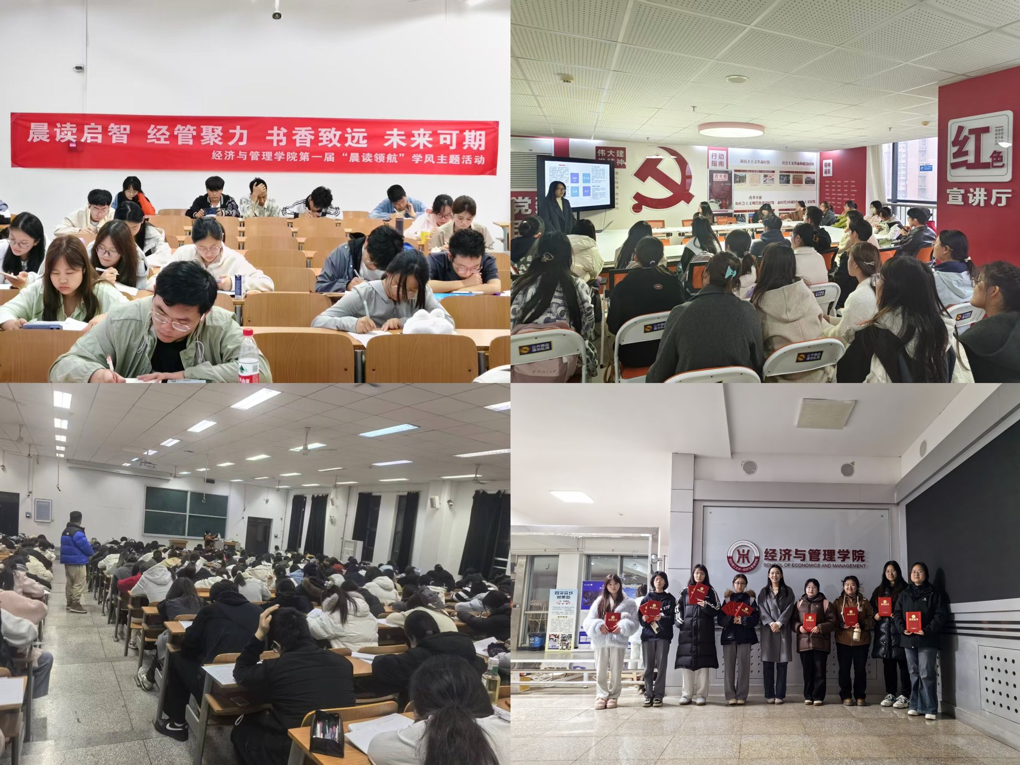 2025年秋季学期,经济与管理学院坚持将学风建设作为落实立德树人任务的核心环节,以常态化、机制化管理为基础,以品牌化、精准化活动为驱动,系统推进学风建设提质增效。学院通过强化日常督导、深化思想引领、创新活动载体,着力构建“管理—教育—活动”三位一体的学风建设体系,全面营造笃学力行、追求卓越的学习氛围,为高素质经管人才培养筑牢坚实基础。