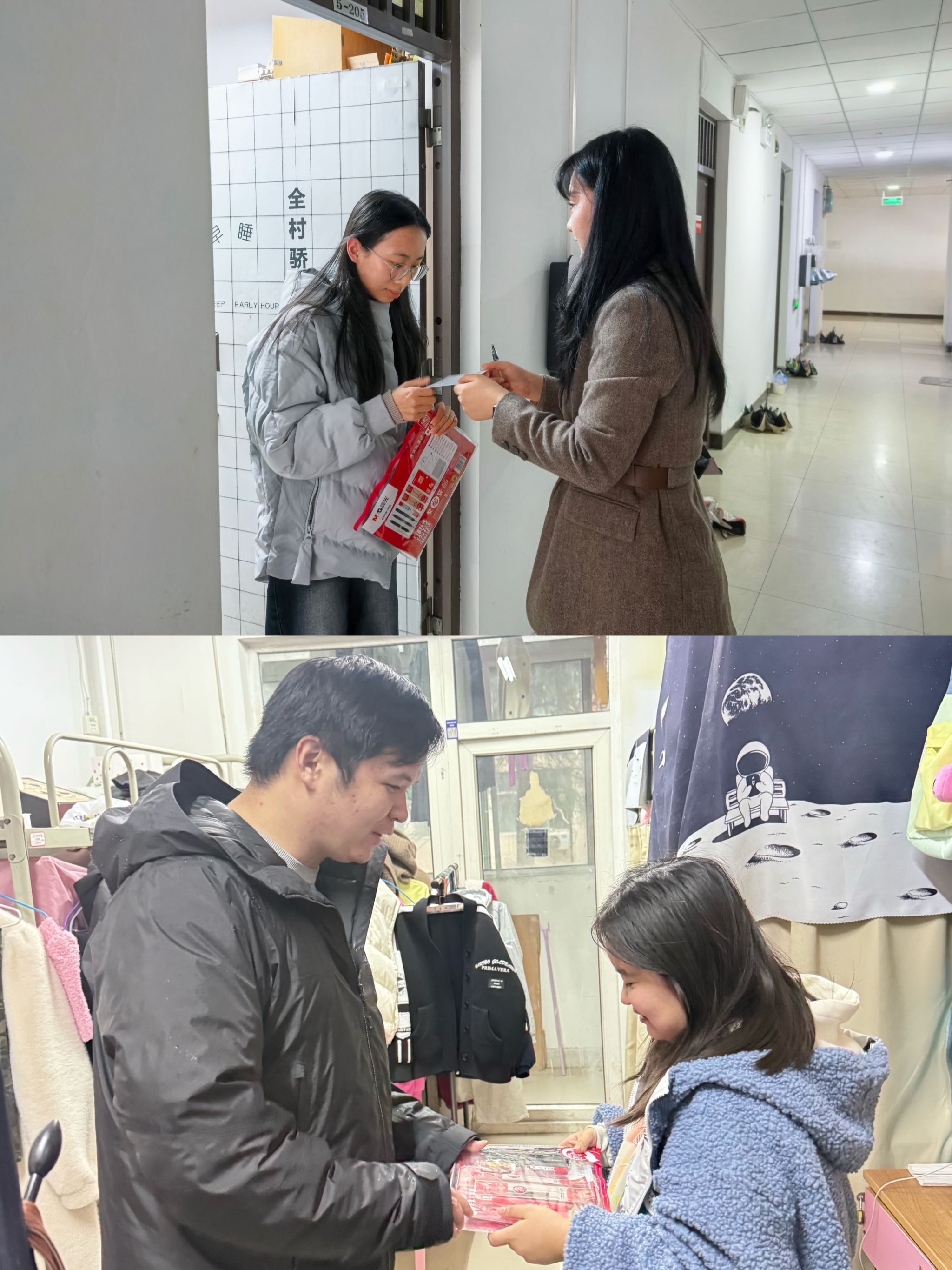 活动结束后,梁姝、曹佩豪随即前往学生宿舍进行走访慰问。在走访过程中,两位辅导员与学子们面对面深入交流,详细询问大家的复习进度、住宿保暖情况及备考过程中遇到的实际困难,针对部分学子存在的压力过大、复习效率波动等问题进行个性化疏导。同时,结合宿舍环境特点,提醒同学们注意用电安全、保持作息规律,鼓励室友间互帮互助、共同进步,以团结协作的氛围凝聚备考合力。学子们纷纷表示,宿舍走访中的贴心交流让关怀更接地气,进一步感受到了学院的全方位保障,将把这份温暖转化为冲刺动力,全力备战考试。