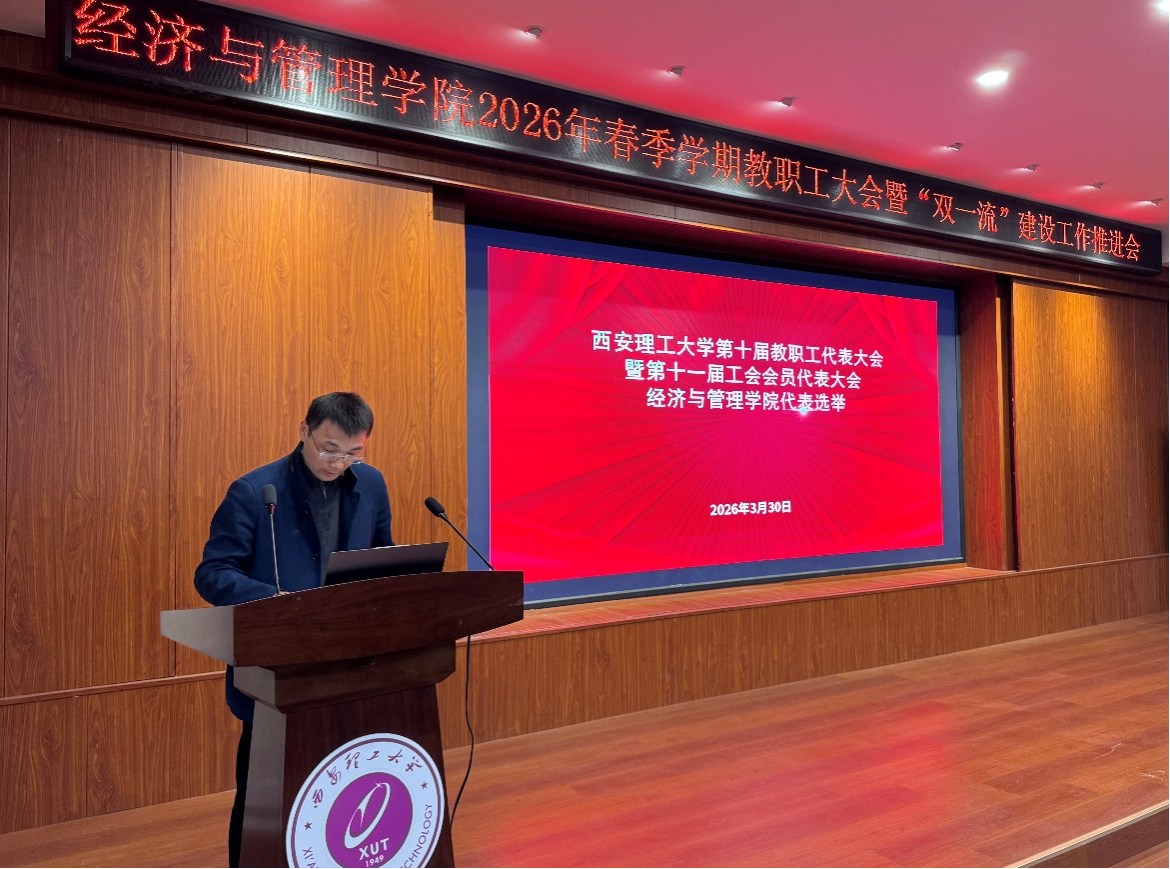 2026年3月30日,西安理工大学经济与管理学院在人文学院模拟法庭召开西安理工大学第十届教职工代表大会暨第十一届工会会员代表大会经济与管理学院代表选举大会。学院全体教职工参加会议,会议由学院工会主席祝明伟主持。