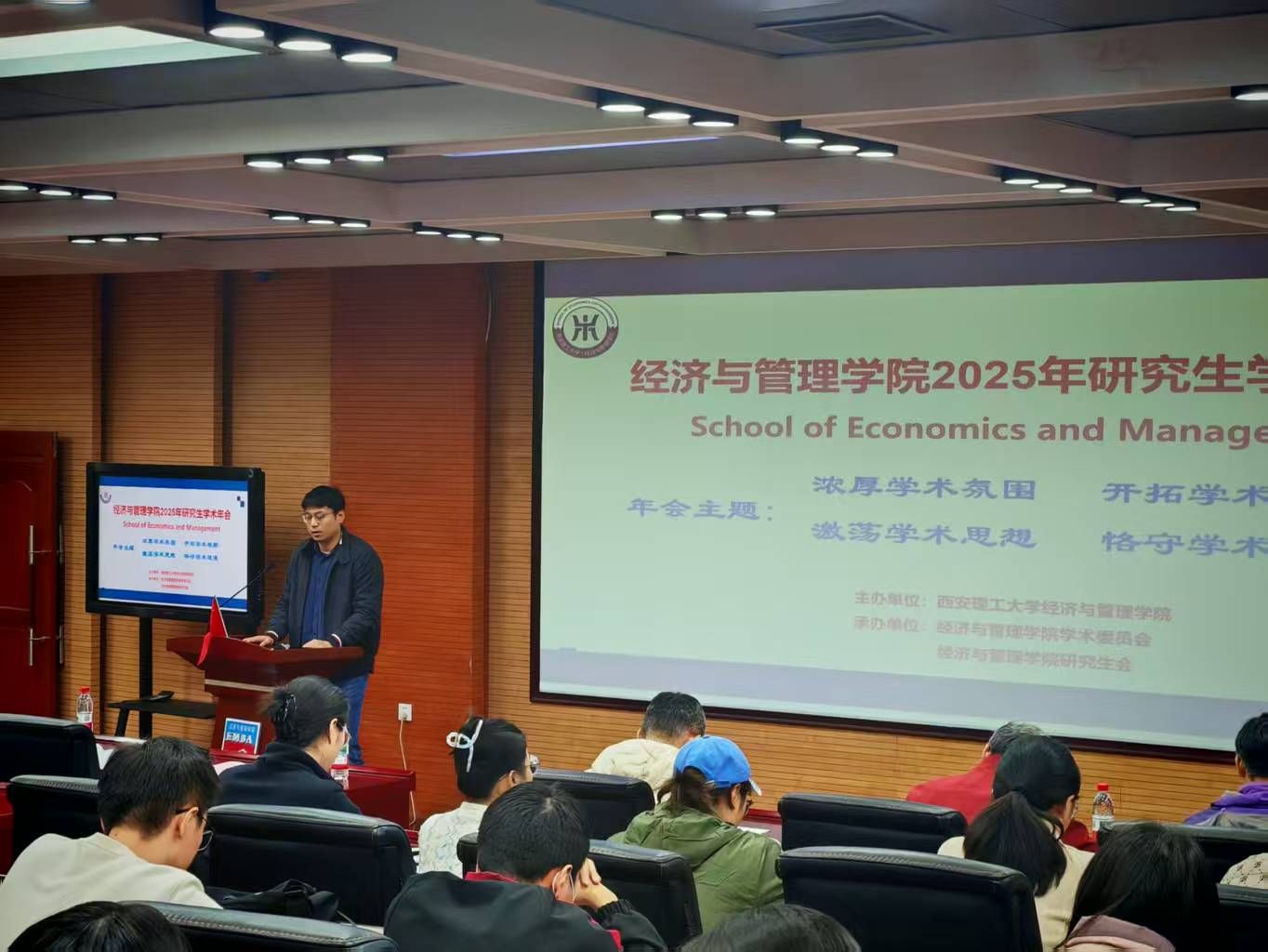 2025年11月7日下午,西安理工大学2025年研究生学术年会——经济与管理学院分会开幕式在曲江校区教11楼EMBA报告厅召开。研究生院副院长田原晖、经济与管理学院副院长赵璟、工商管理学学科带头人扈文秀、应用经济学学科带头人薛伟贤,学术年会各组组长及学院各系主任出席了本次开幕式。西安交通大学江旭教授作为特邀嘉宾出席了本次开幕式。本次年会以“浓厚学术氛围、开拓学术视野、激荡学术思想、恪守学术道德”为主题,旨在激发研究生创新思维,提升学术研究素养。会议由赵璟主持。